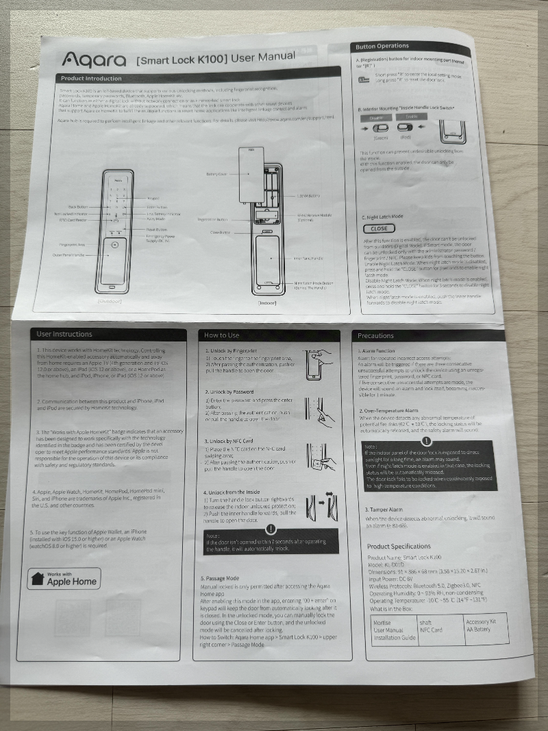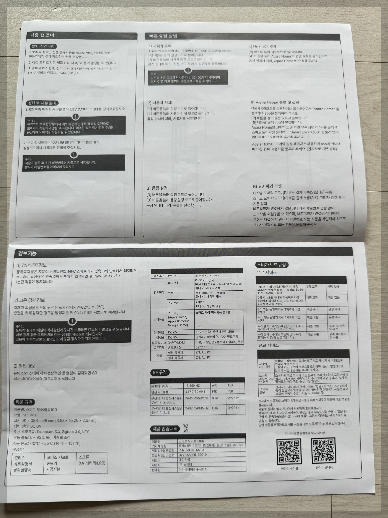 - 아카라 스마트 도어락 K100 언박싱을 해봤습니다. 군더더기 없이 깔끔하고 있을껀 다 있습니다. 초보분들도 쉽게 설치할수있게 설명서도 잘 작성이 되어있습니다. 이상 외관 및 구성을 끝마치고 설치후기에 대해 또다른 게시글로 남기겠습니다.