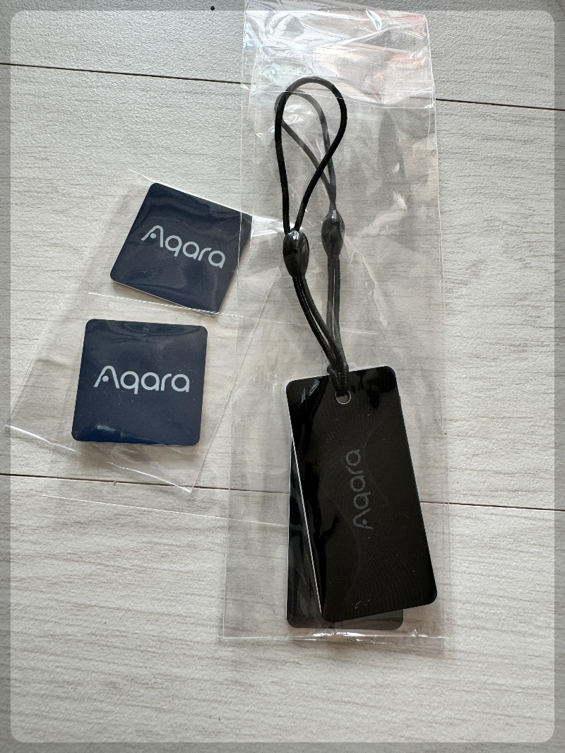 NFC카드가 어디에든 붙일수있는 것 2개, 열쇠고리용 2개 들어있습니다. Aqara 로고가 상당히 마음에 듭니다.