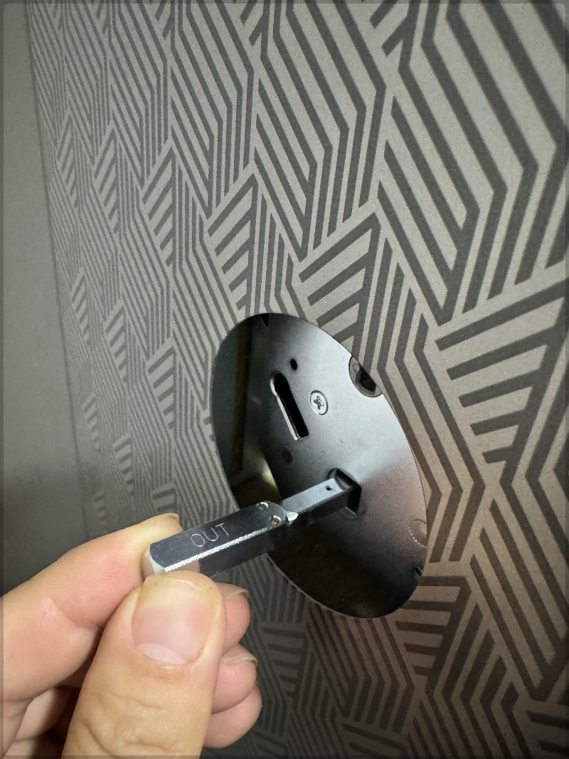 이제 아웃바디설치를 해야됩니다. 아웃바디를 먼저 문에 설치한뒤 자리를 잡고나면
