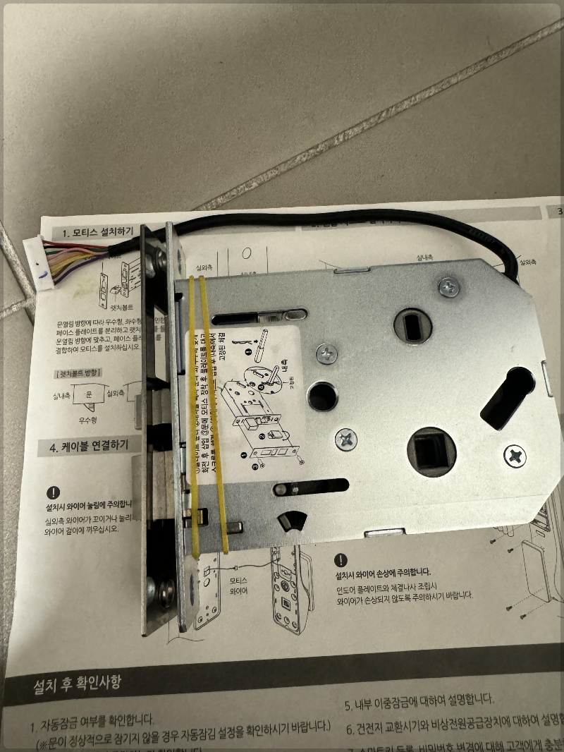 모티스를 장착하고 스트라이크를 꼽고나서 나사를 조여줍니다. 모티스 설치는 완료되었습니다.