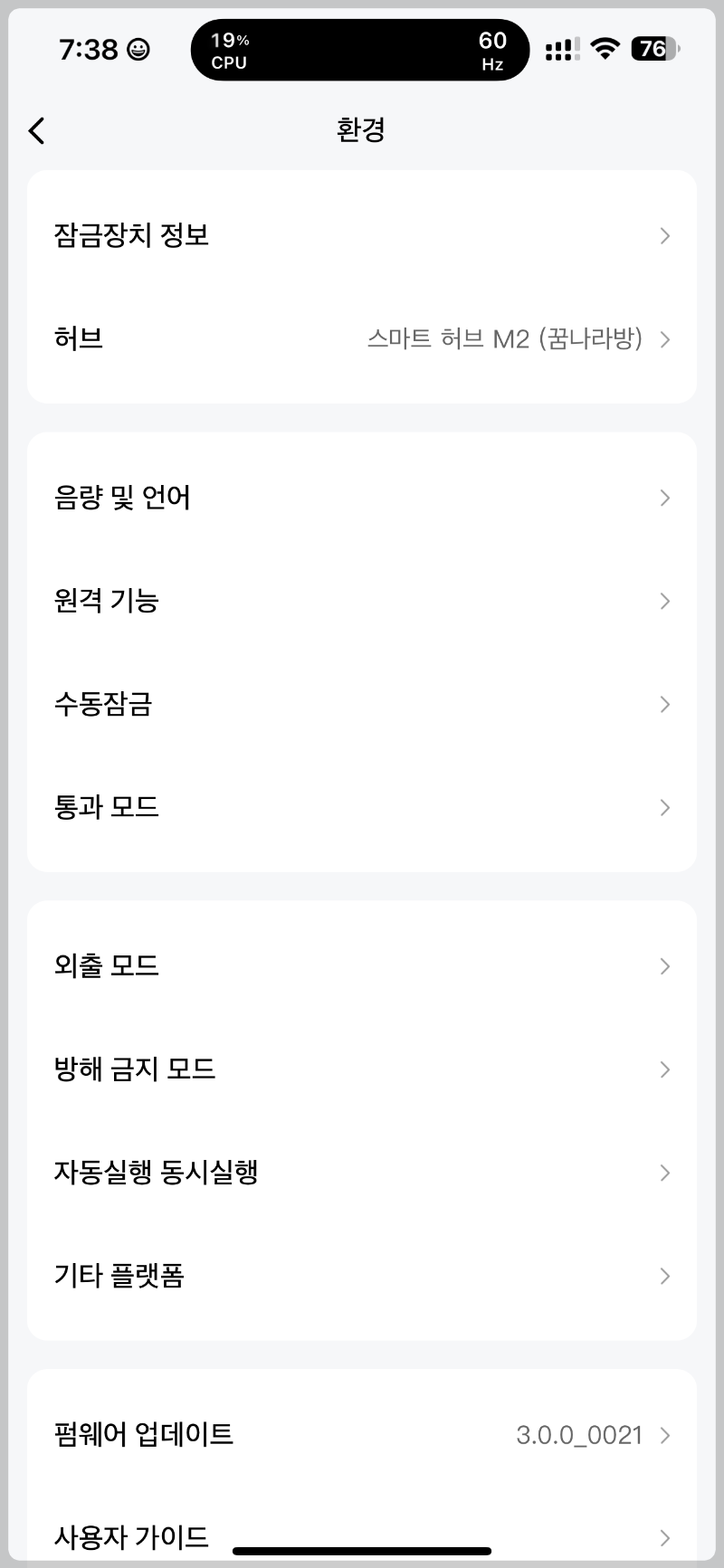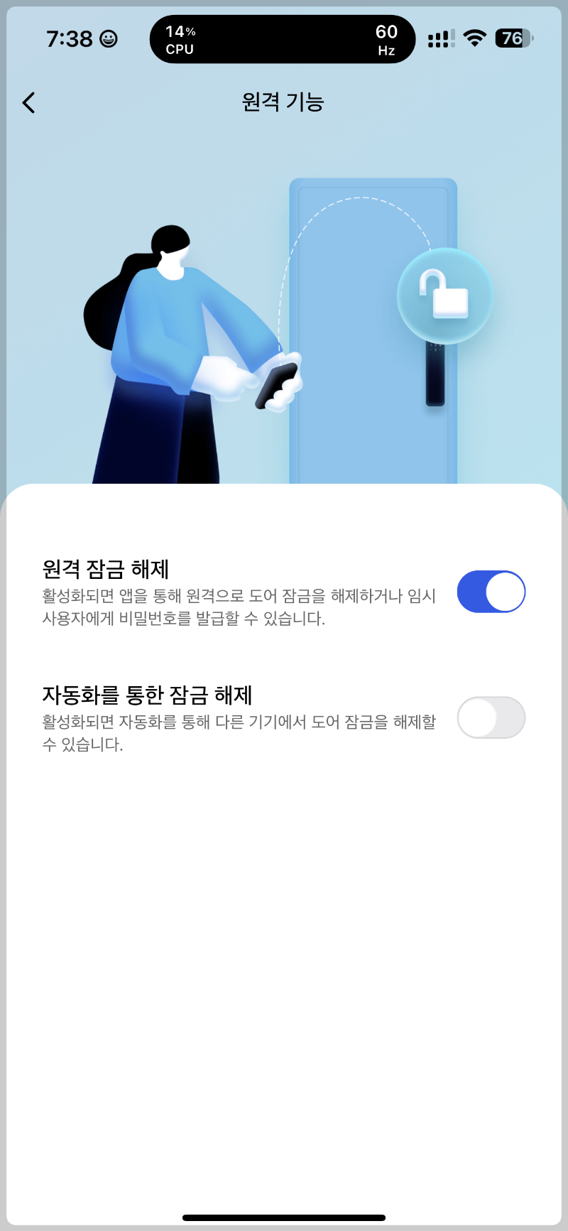 허브가 연결이 되어야 외부에서 도어락을 조절할수있습니다.