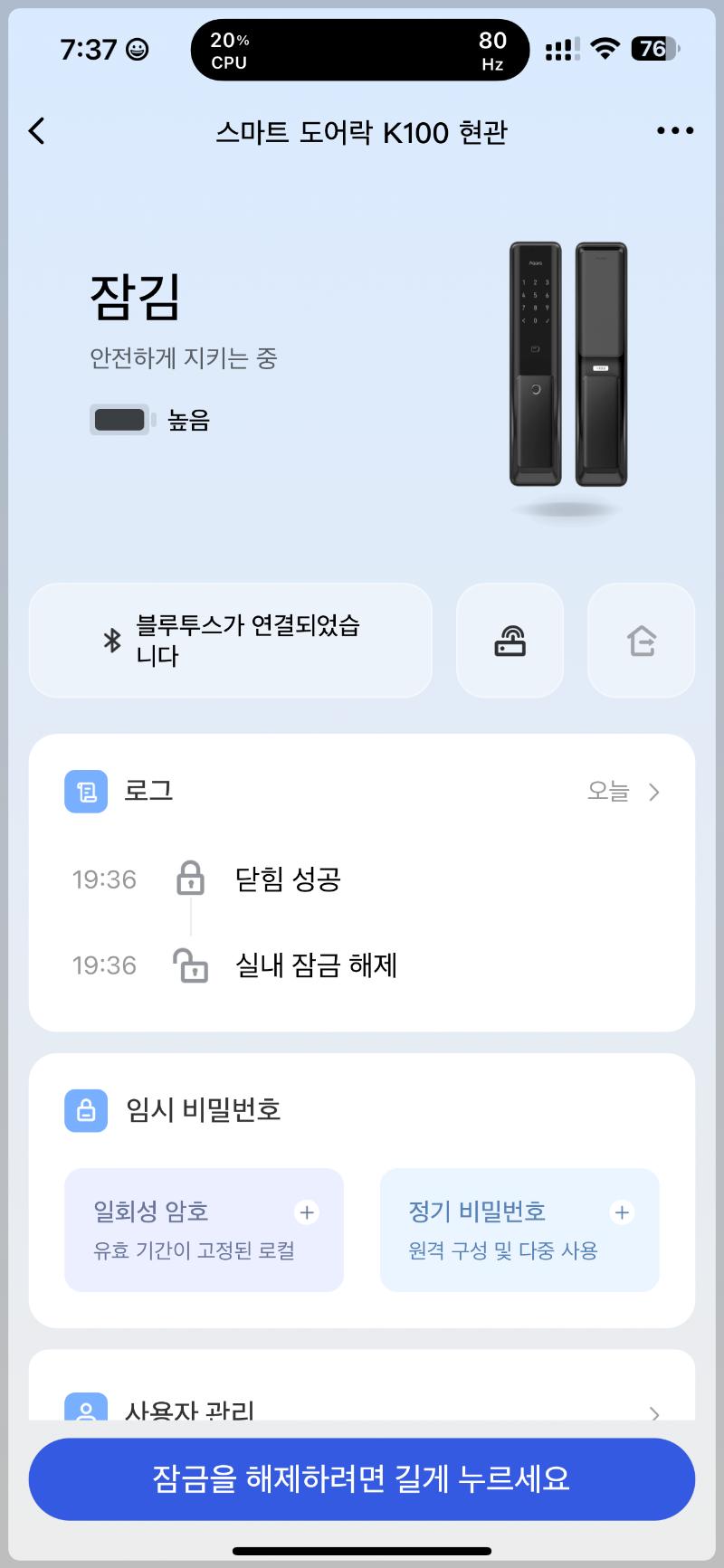 지문인식속도는 정말 어마무시하게 빨랐습니다. 이거하나만으로도 와이프가 상당히 만족하고 있습니다.
