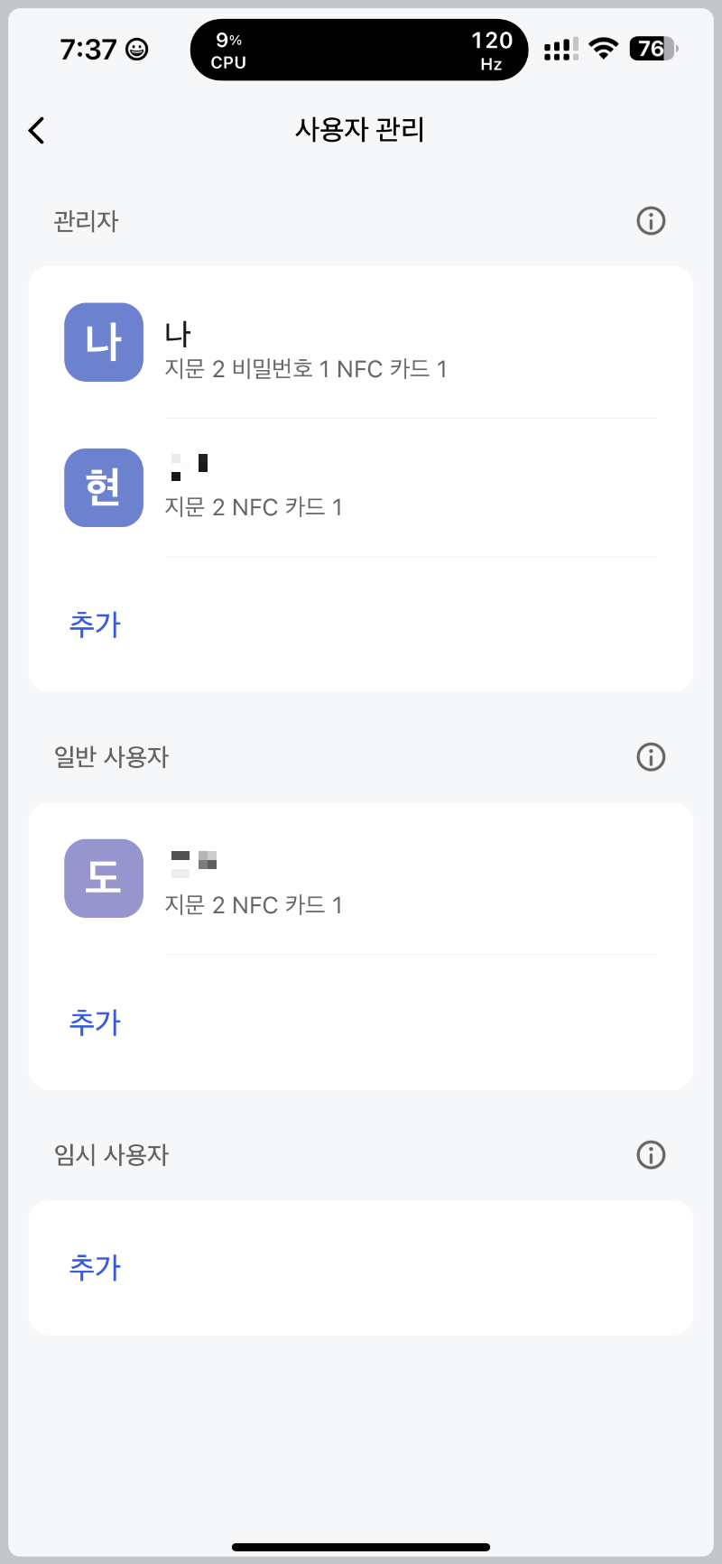 관리자로 설정도 가능하며, 일반사용자, 임시사용자 모두 나눠서 관리를 할수있습니다.