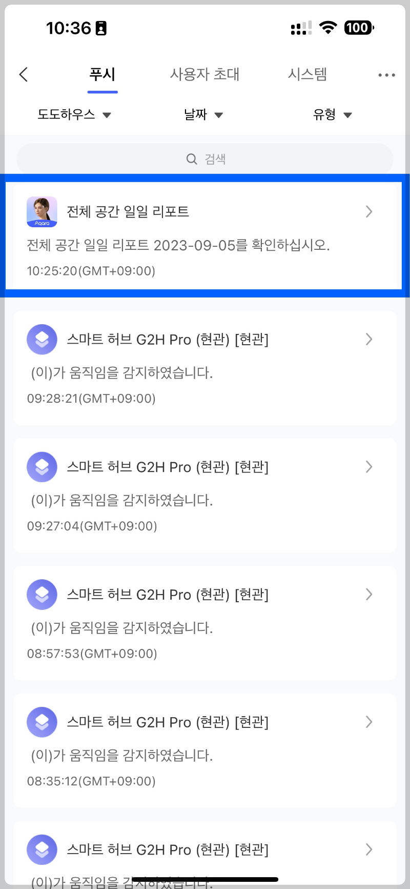 일일 리포트 알림 들어가서 내가 만든 홈을 선택,알림선택