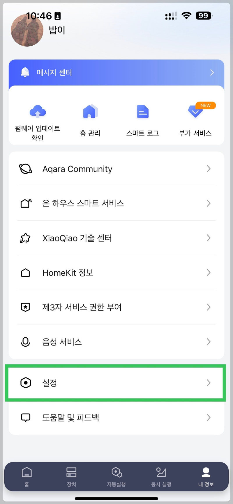 일일 리포트 알림 들어가서 내가 만든 홈을 선택,알림선택